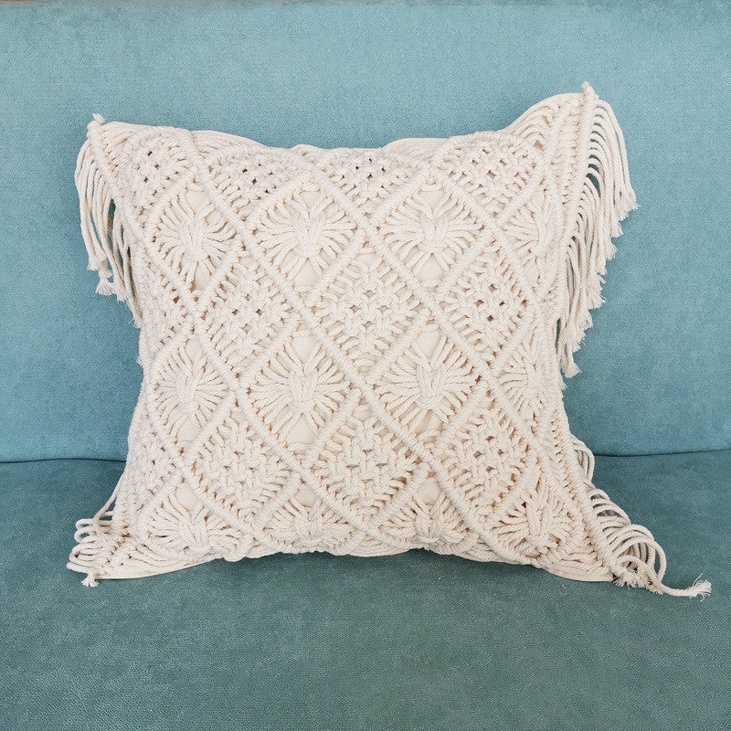 Beige Morocco Handmade Knitting Woven Pillow Cushion Cover